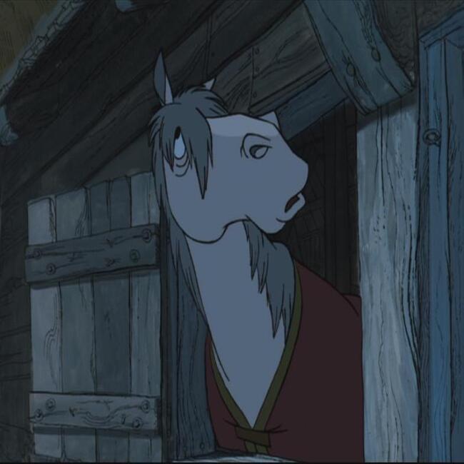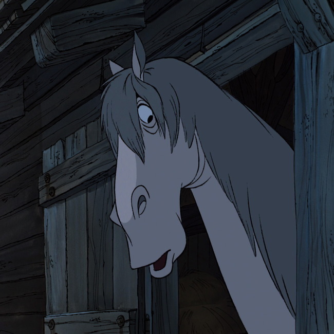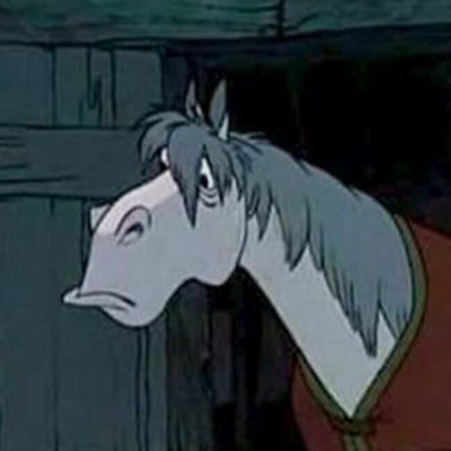 This is a picture of Captain, the fictional character, the gray horse involved in helping Pongo and Perdita find their children, is a supporting character in the 1961 Disney film One Hundred and One Dalmatians.